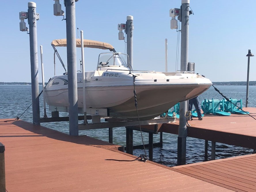 Shore Mounted Lifts:These can be used to lift a boat out of the water and hold the boat in a cradle above the dock. This is especially helpful for maintenance, repair, or storage of a boat, because storing a boat above the water can help prevent the growth of bacteria or mildew.